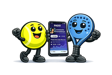 PADO pozwala zawodnikom samodzielnie rezerwować korty przez aplikację mobilną lub platformę web. To zmniejsza obciążenie administratorów i zwiększa liczbę rezerwacji.